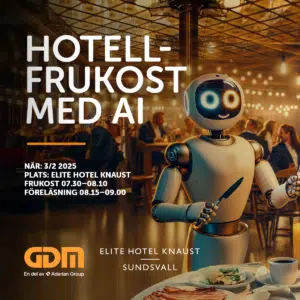 Den 3 februari bjuder vi in till en inspirerande morgon i den vackra Spegelsalen på Elite Hotel Knaust i Sundsvall. Starta veckan med ny energi och få insikter om hur artificiell intelligens kan hjälpa din verksamhet att växa och utvecklas.